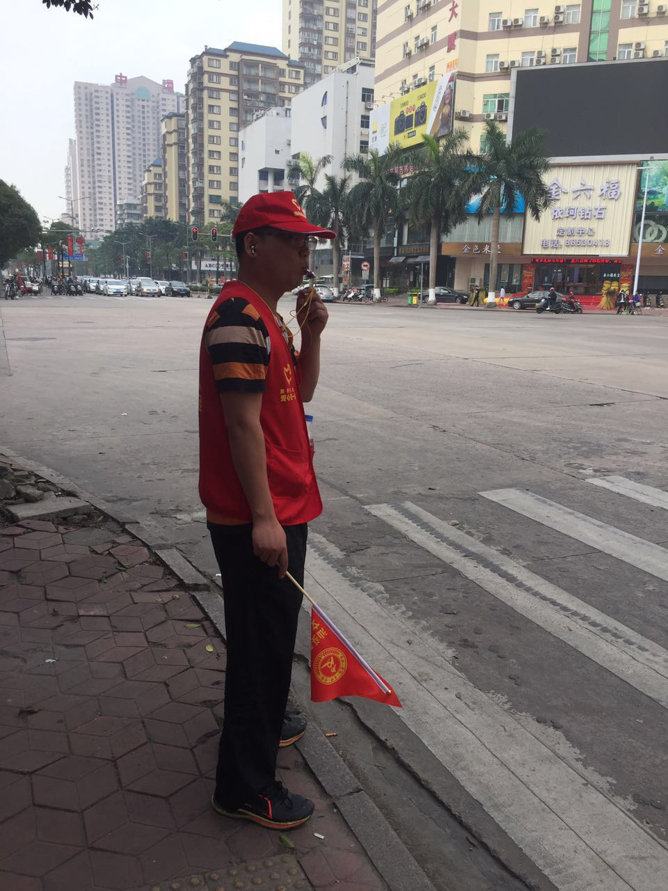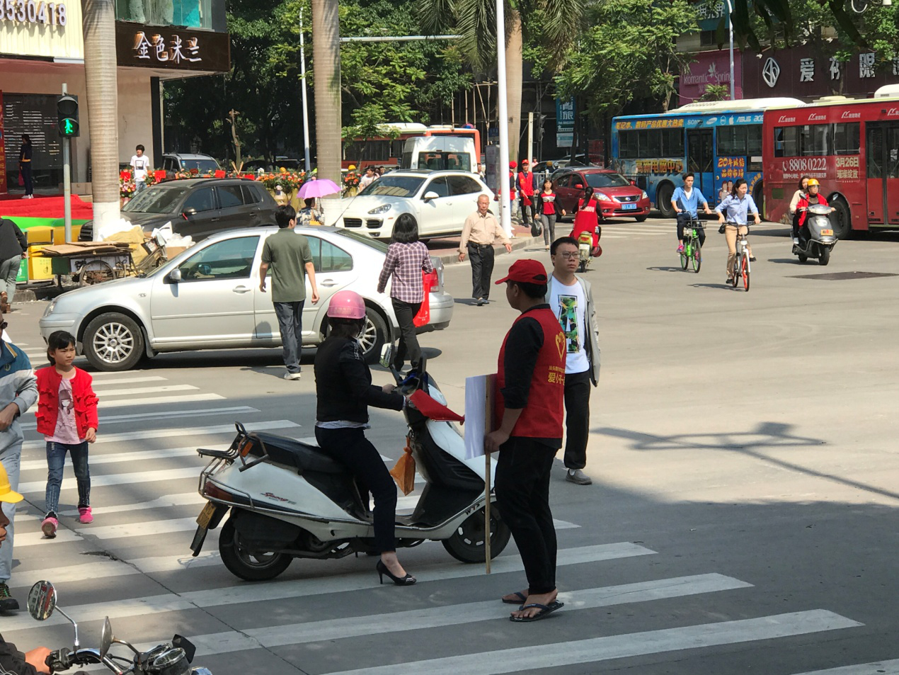 随处可见志愿者挥动小红旗,协助交警维持交通,车辆、行人通行井然有序,汕头市市中心城区交通状况大为改观。