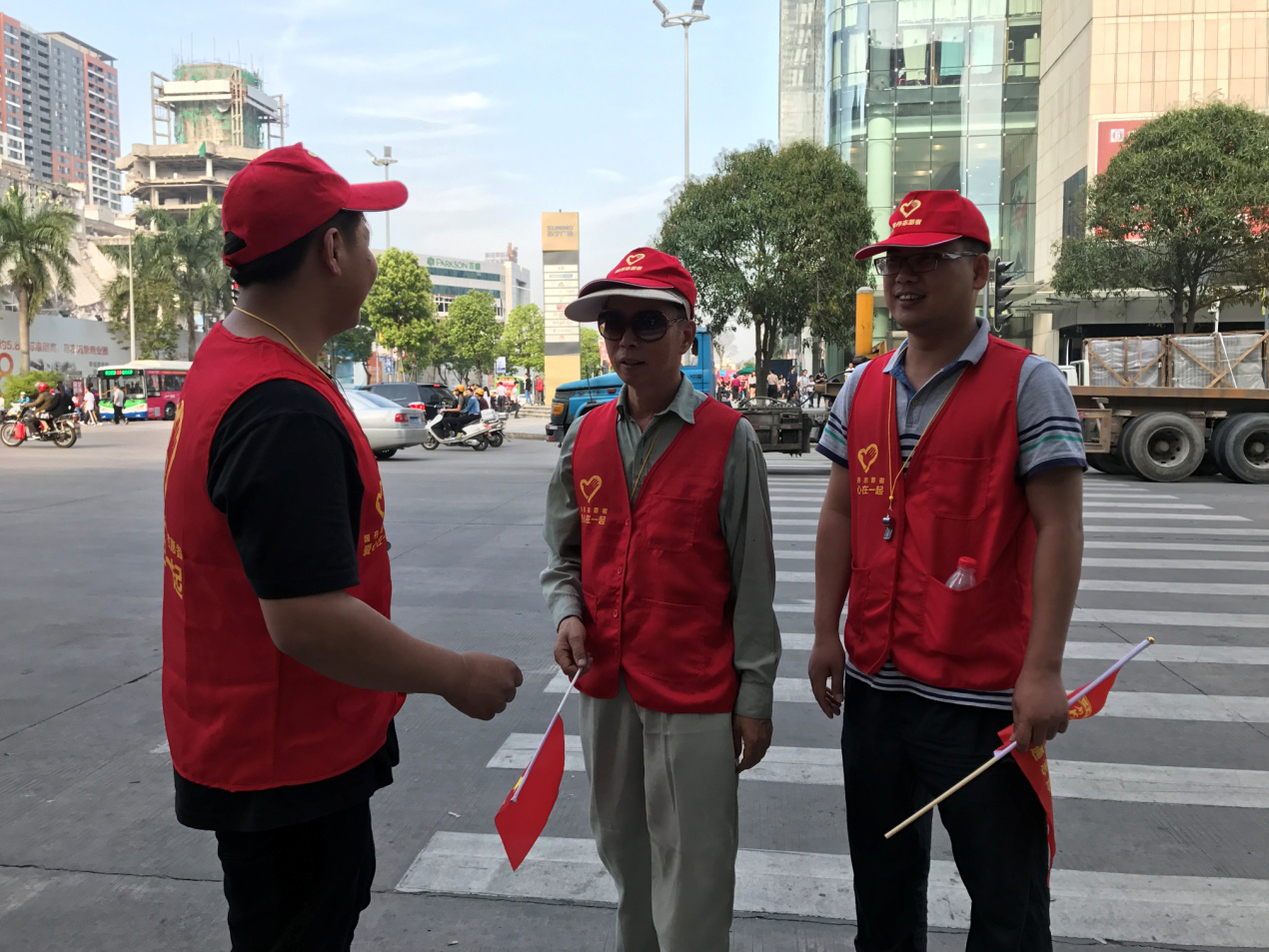 汕头龙湖肤康皮肤科门诊部志愿者到责任路口上岗,身着志愿服饰、挥舞着旗帜,相聚在市中心苏宁广场,正式吹响了文明交通劝导志愿服务活动的集结号。